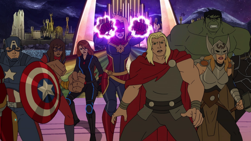 Se trata de una serie de animación que gira en torno al grupo de Los Vengadores formado por Iron Man, Capitán América, La Viuda Negra, Ojo de Halcón, Thor y Falcon. Éste último el miembro más reciente y los principales ojos y oídos del espectador ya que contará como son sus aventuras con sus compañeros de equipo. Cuando Red Skull se está muriendo debido al suero imperfecto del Súper Soldado, se unirá con MODOK para poder secuestrar al Capitán América para que Red Skull pueda transferirse en él. Después de su derrota a manos del equipo de Los Vengadores, Red Skull consigue llevarse con él el soporte de Tony Stark dejándole como muerto.